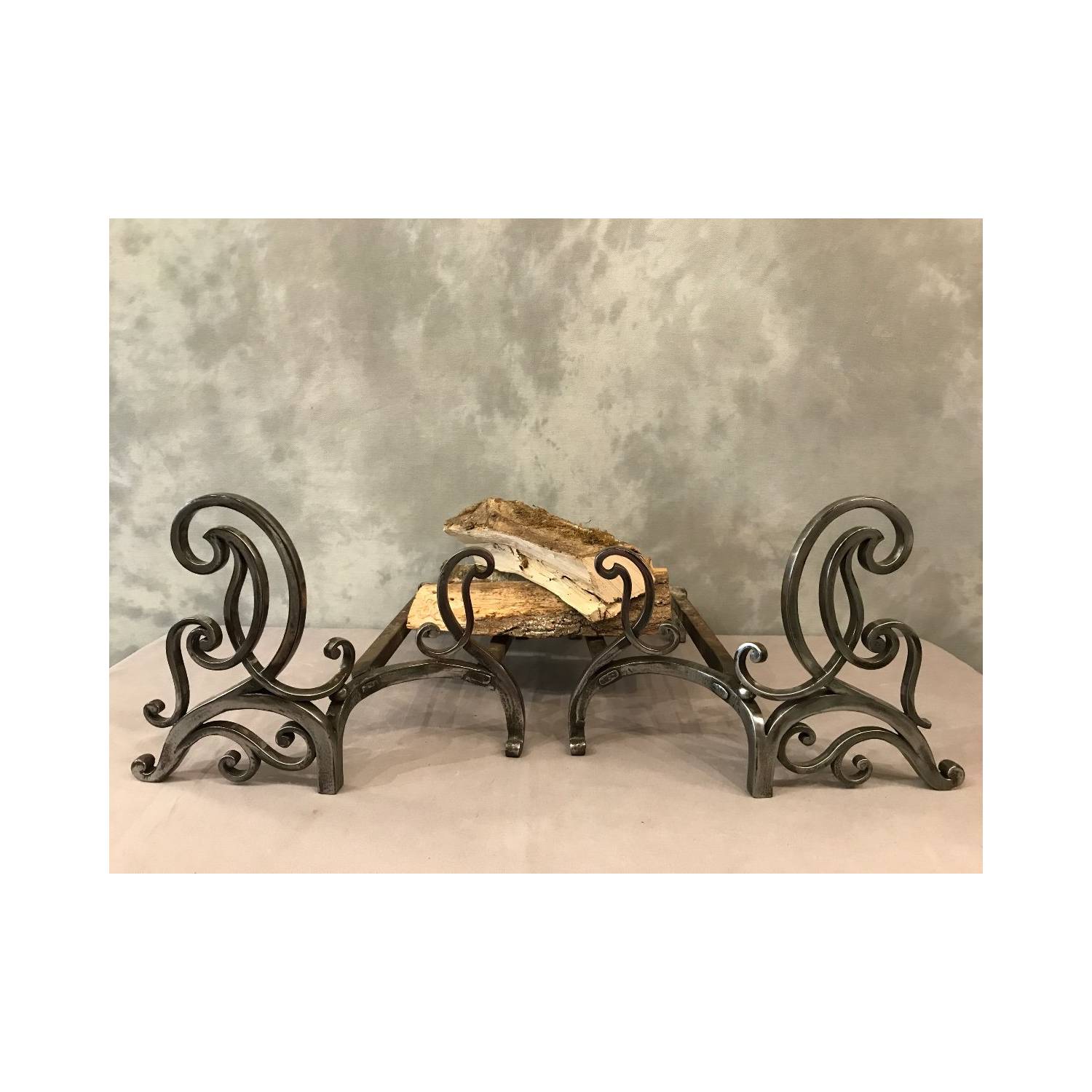 Pair of era polished iron tracks 18 th Louis XV, they have very nice shapes of volutes and the rear parties with double bars.