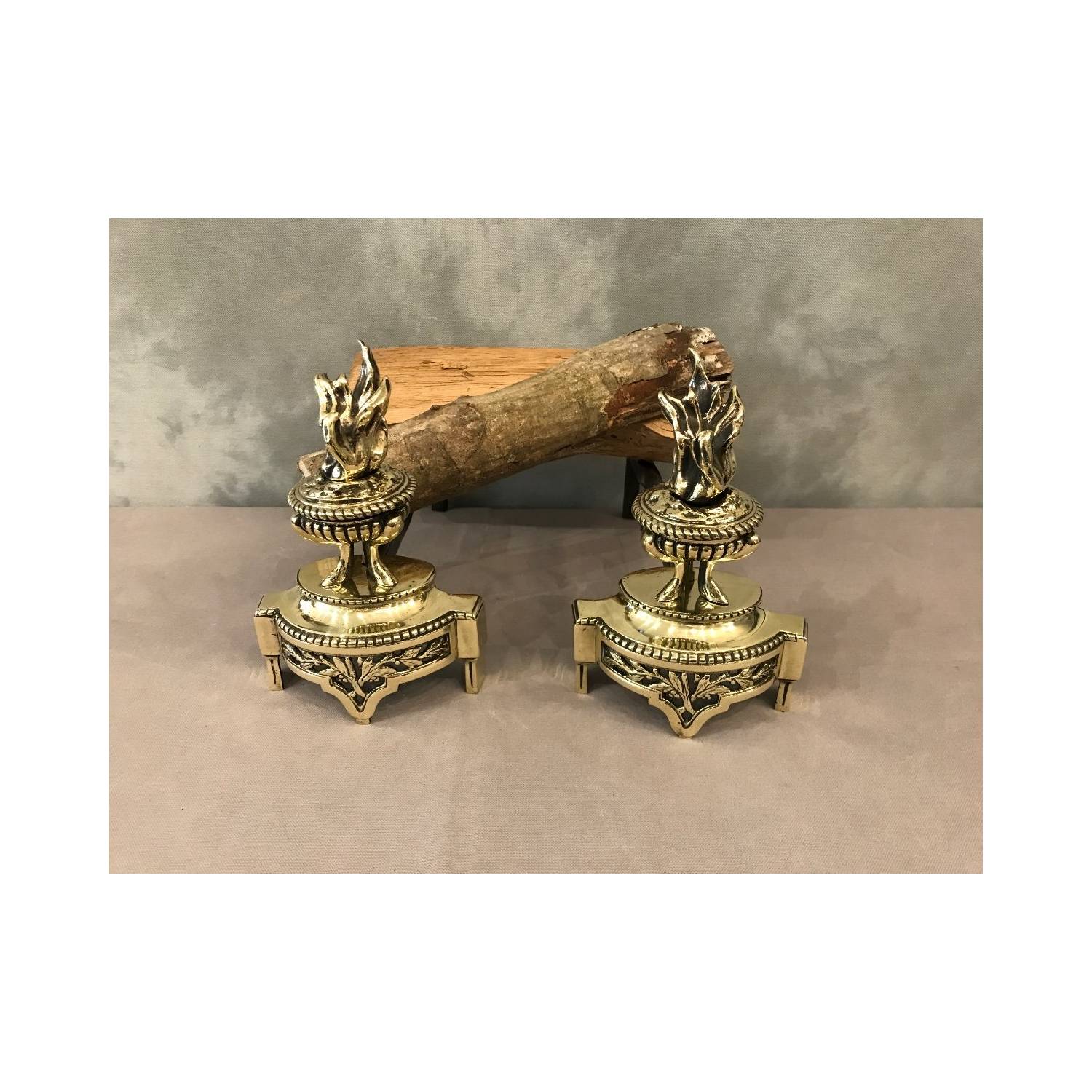 Small polished bronze caterpillars LXV/LXVI style 19 th to set of fire and fire pots.