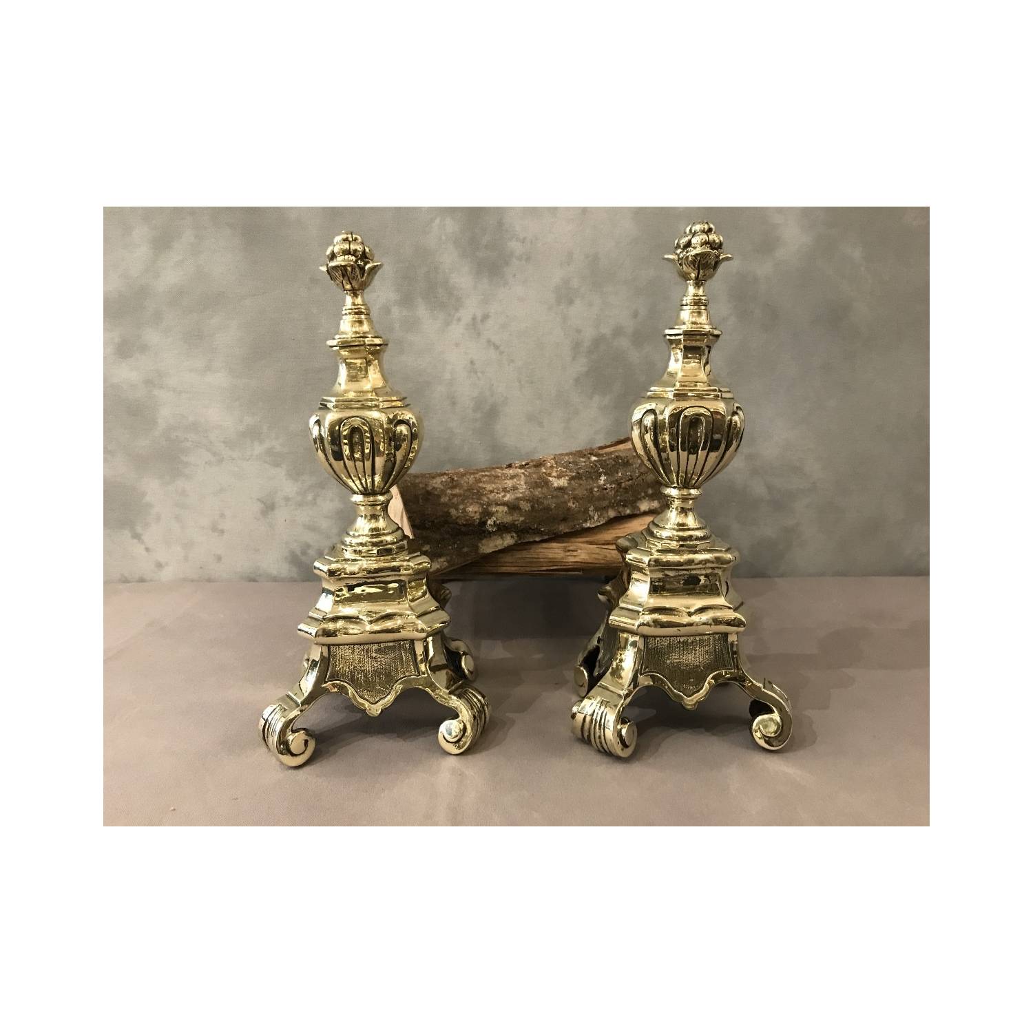 Beautiful old polished bronze caterpillars from the 19th century in the spirit of Louis Louis XIV, nice model on 4 openwork legs and decorated with an exploded grenade on the upper part.