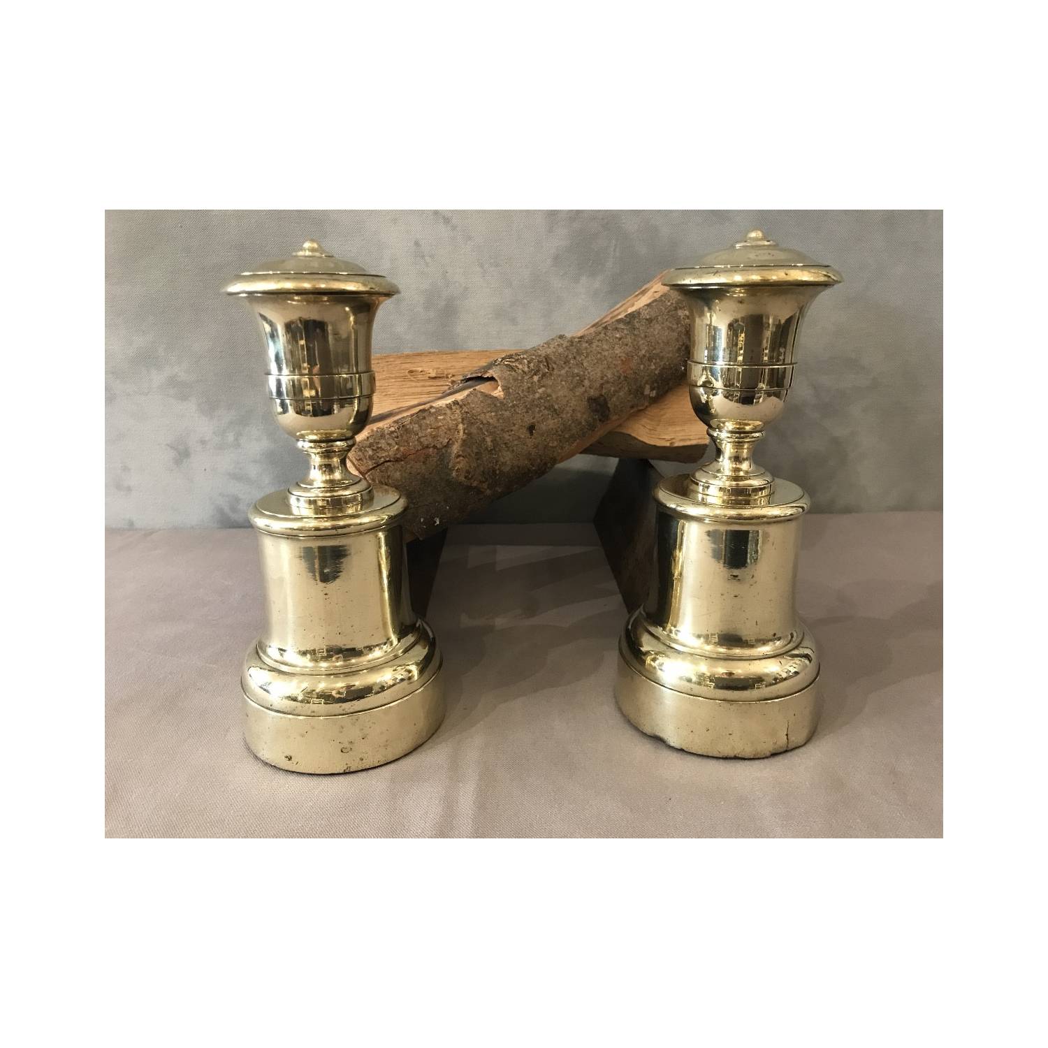 Pair of old brass and cast iron tracks from the 19th century, the facades are in the form of cassolette vases. They are in good condition and of good proportions. Dimensions width 11 cm height 25 cm depth 41 cm