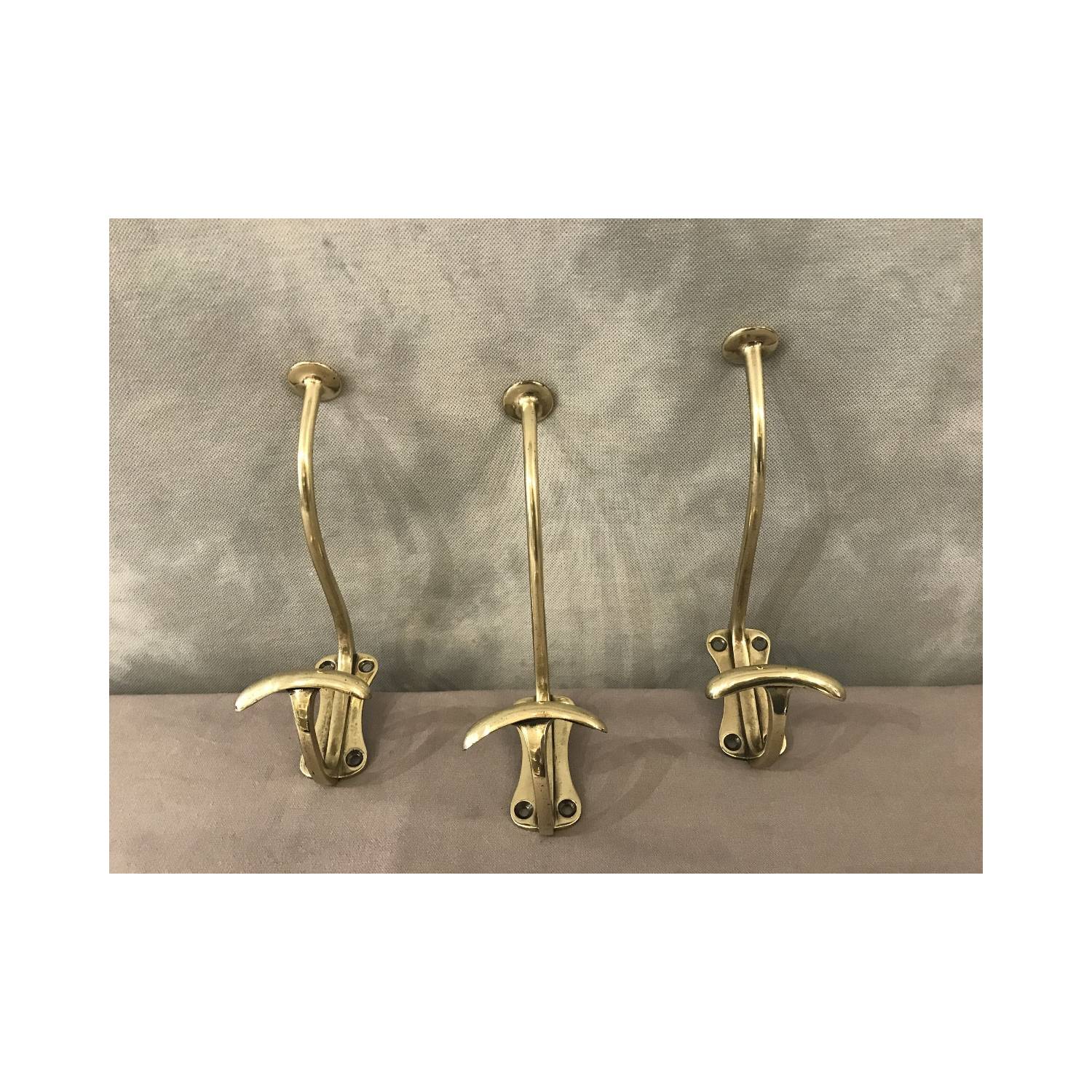 Set of 3 coat hooks, brass bronze coat rack fully polished and varnished from the 19th Louis Philippe era, flat ball model.