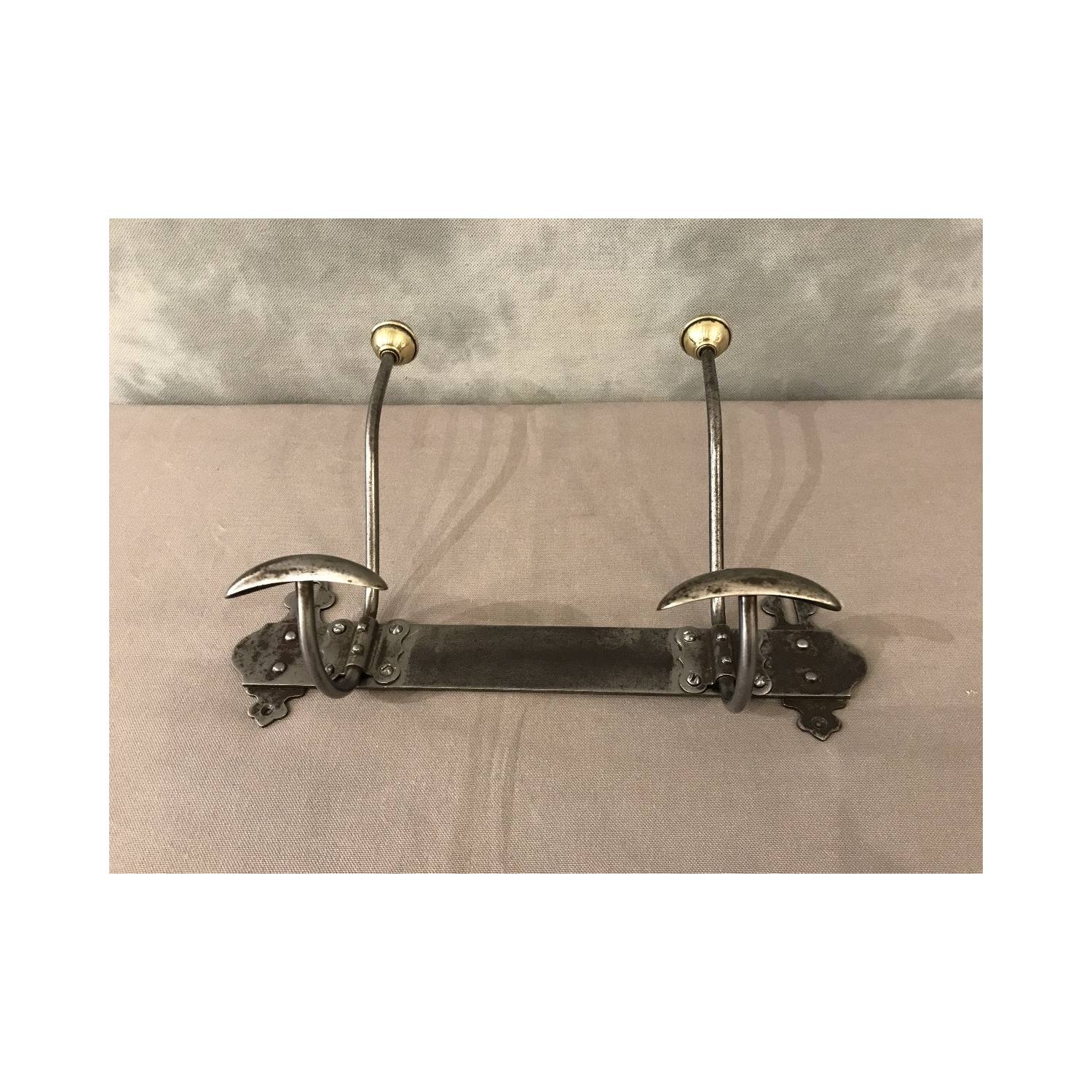 Two coat racks, iron coat hooks with brass ball from the 19th century completely polished and varnished, on an iron support.