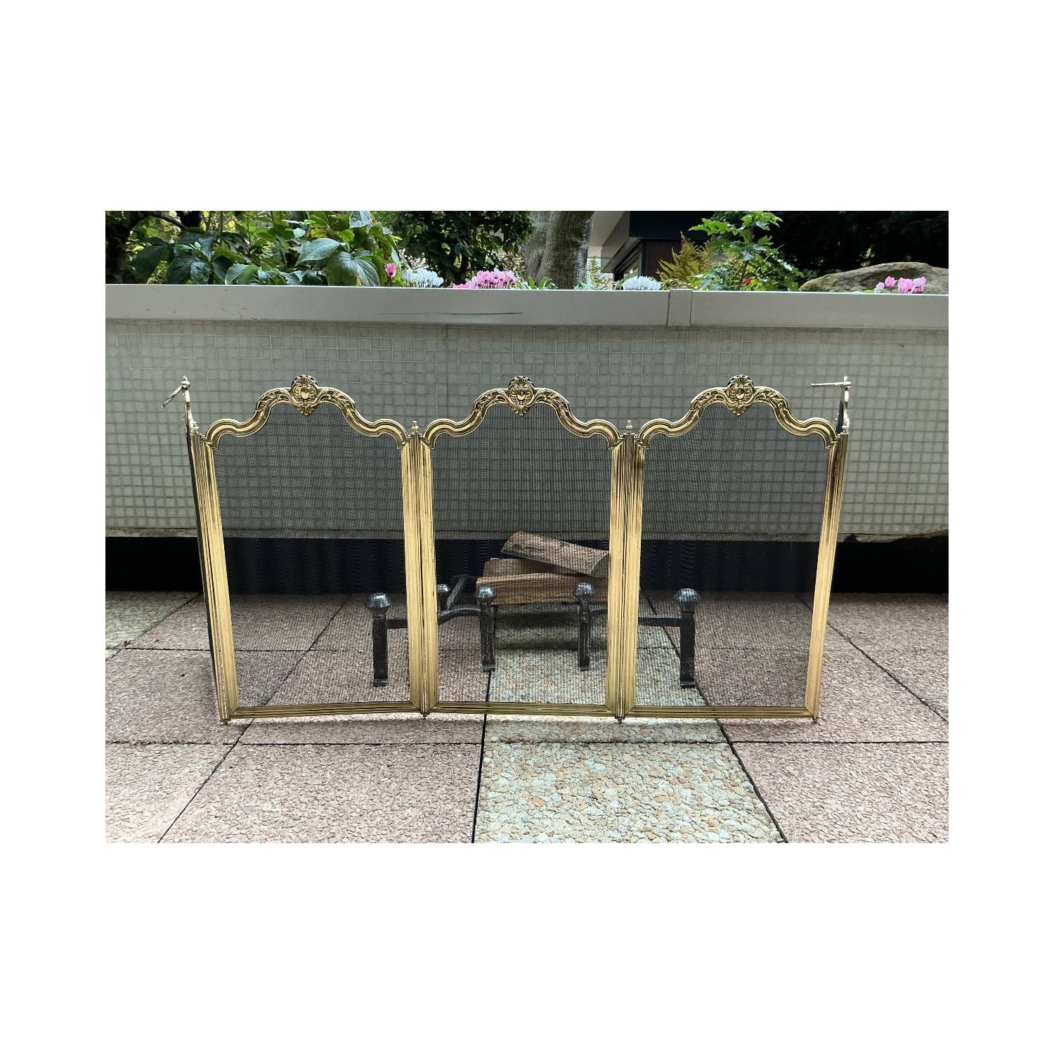Large pare feu de cheminée ancien en laiton d'époque 19 ème
