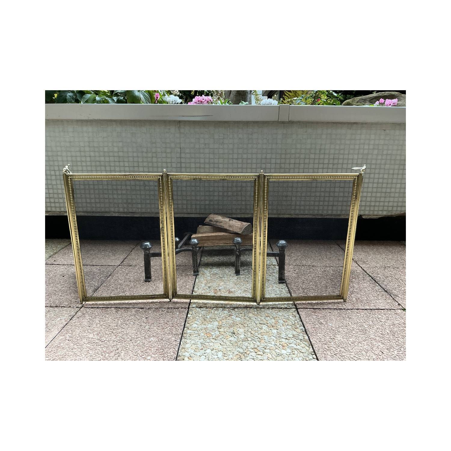 Large pare feu de cheminée ancien en laiton d'époque 19 ème