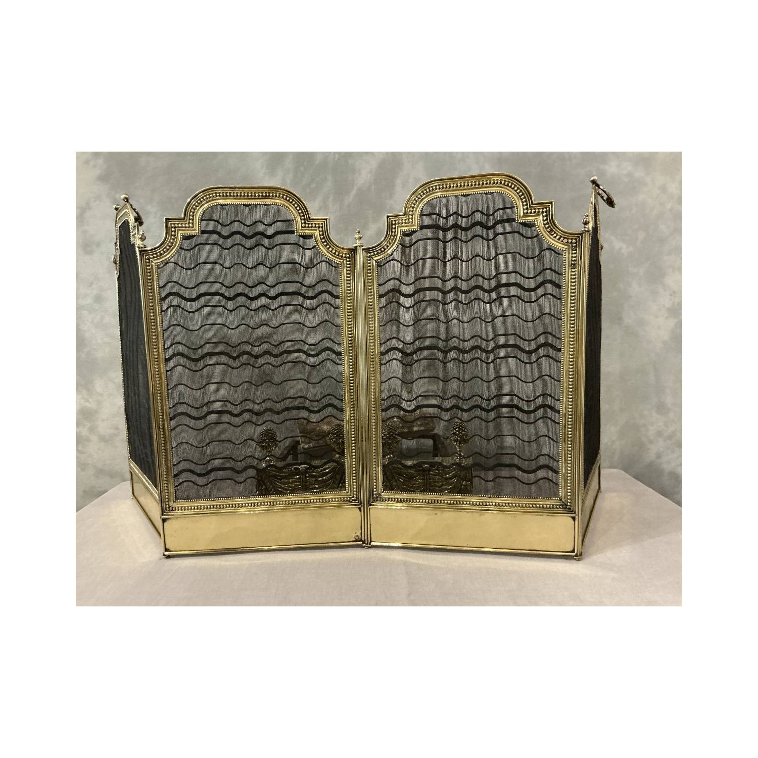 Pare feu de cheminée ancien en laiton d'époque 19 ème Louis xvi
