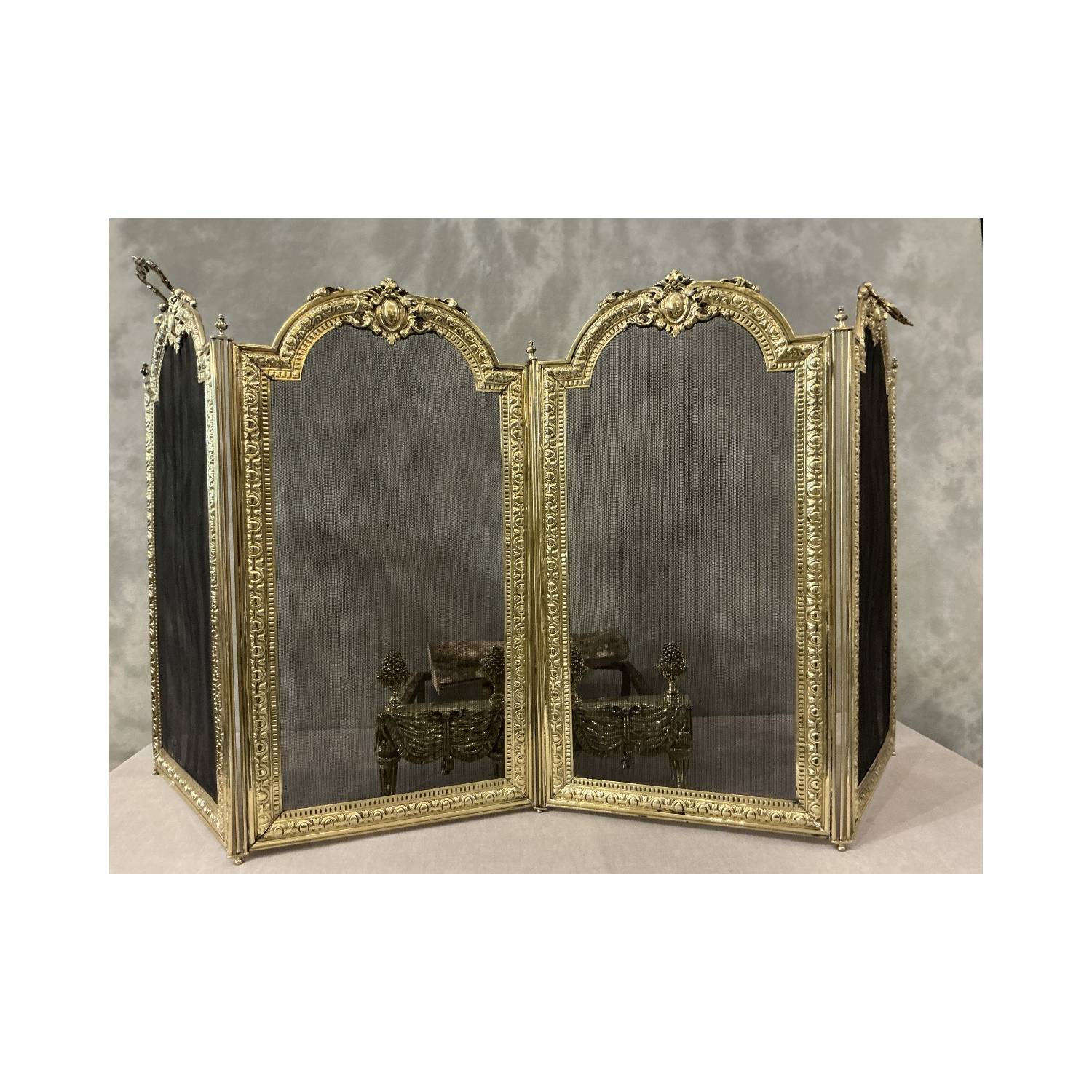 Pare feu de cheminée ancien en laiton d'époque 19 ème