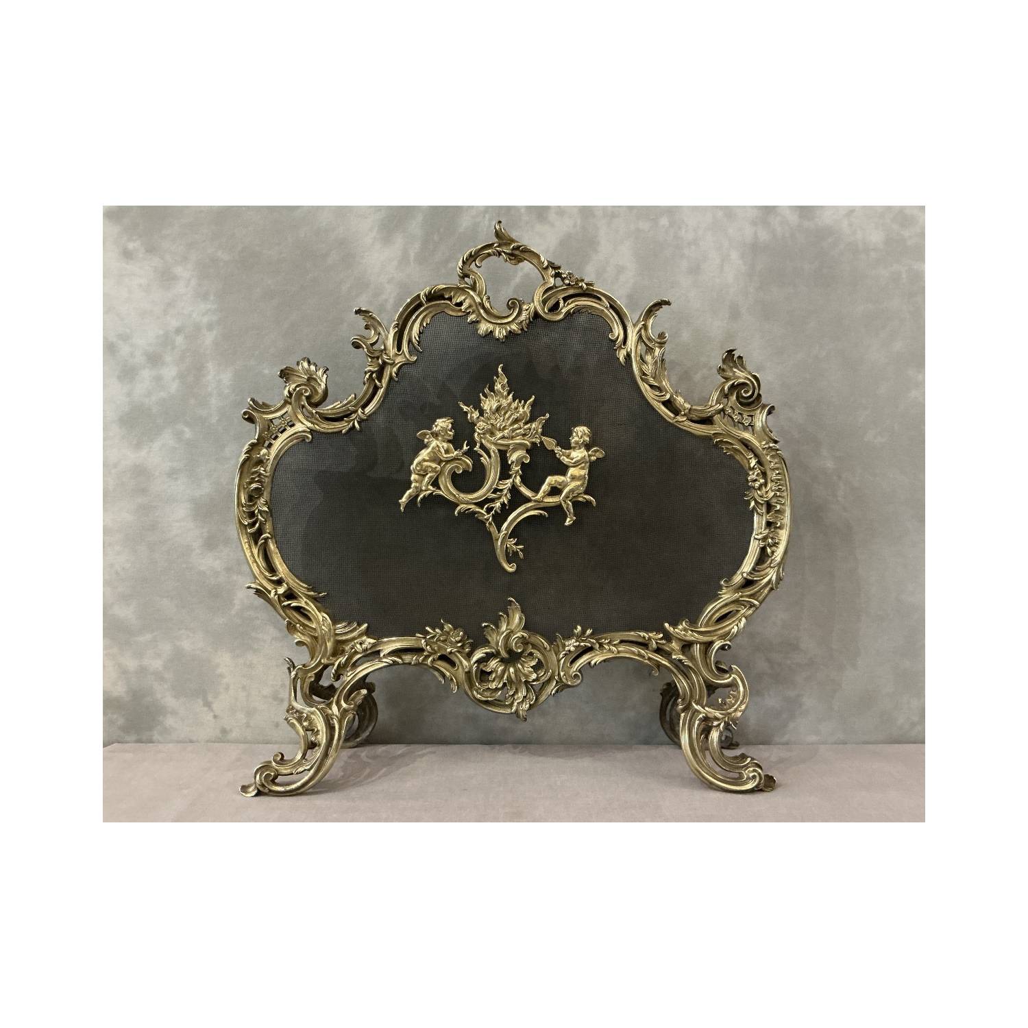 Ecran de cheminée en bronze poli et vernis d'époque 19 ème