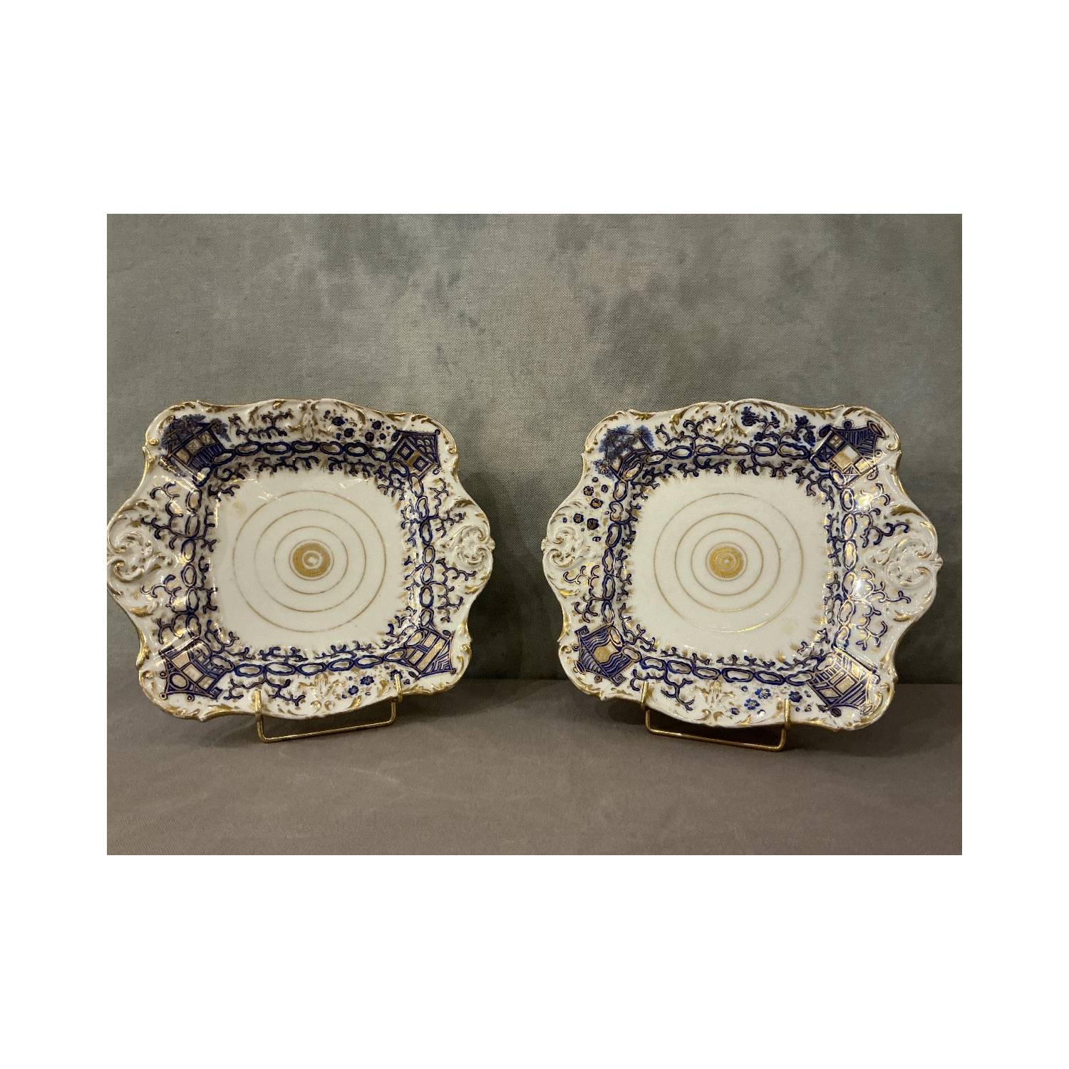 Paire de plats en porcelaine de Vieux Paris d'époque 19 ème