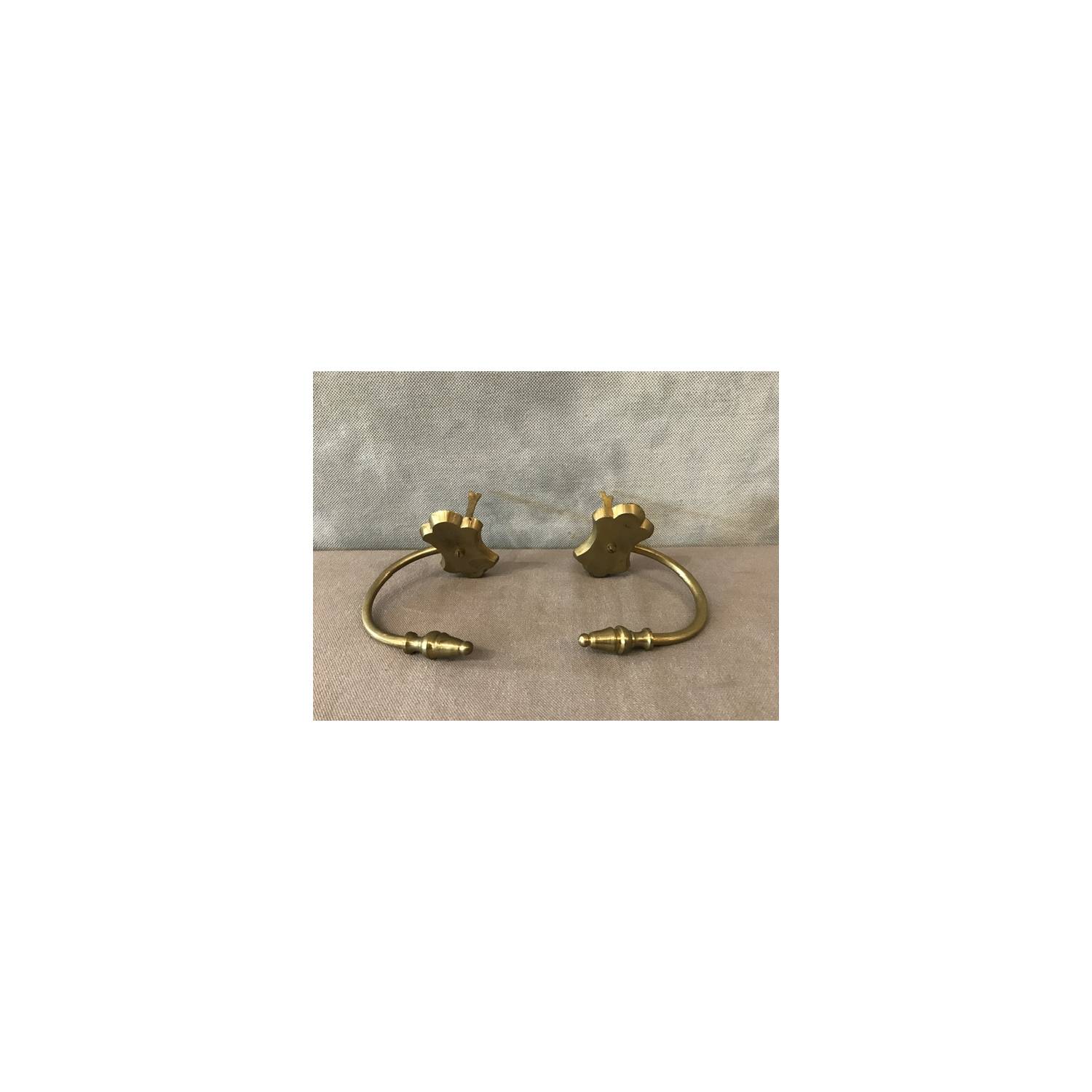 Pair of old fireplace hooks from the 19th century, allowing you to put the shovel and the pliers near the fireplace. Dimensions 8.5cm height 6.5 cm depth 8.5/14 cm