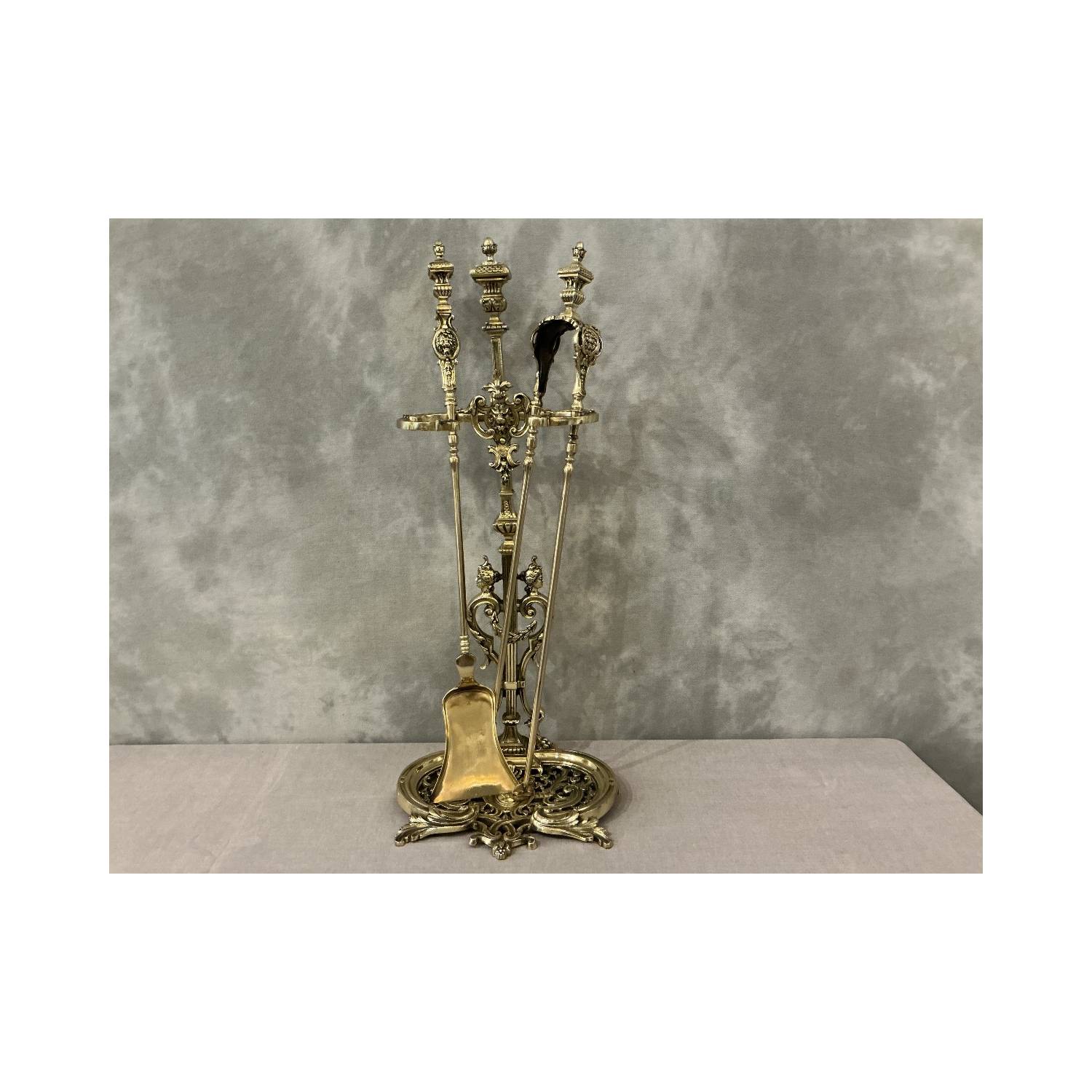 Beau serviteur de cheminée en bronze et laiton d'époque 19 ème