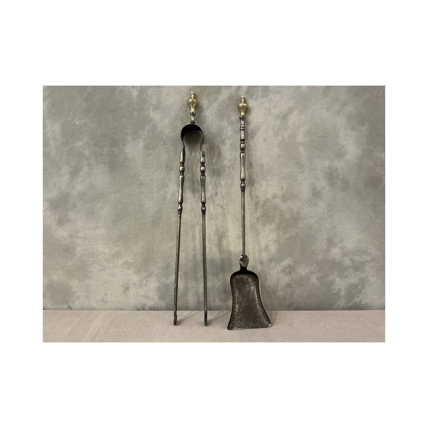 Ensemble d'une pelle et d'une pince de cheminée en fer d'époque 19 ème