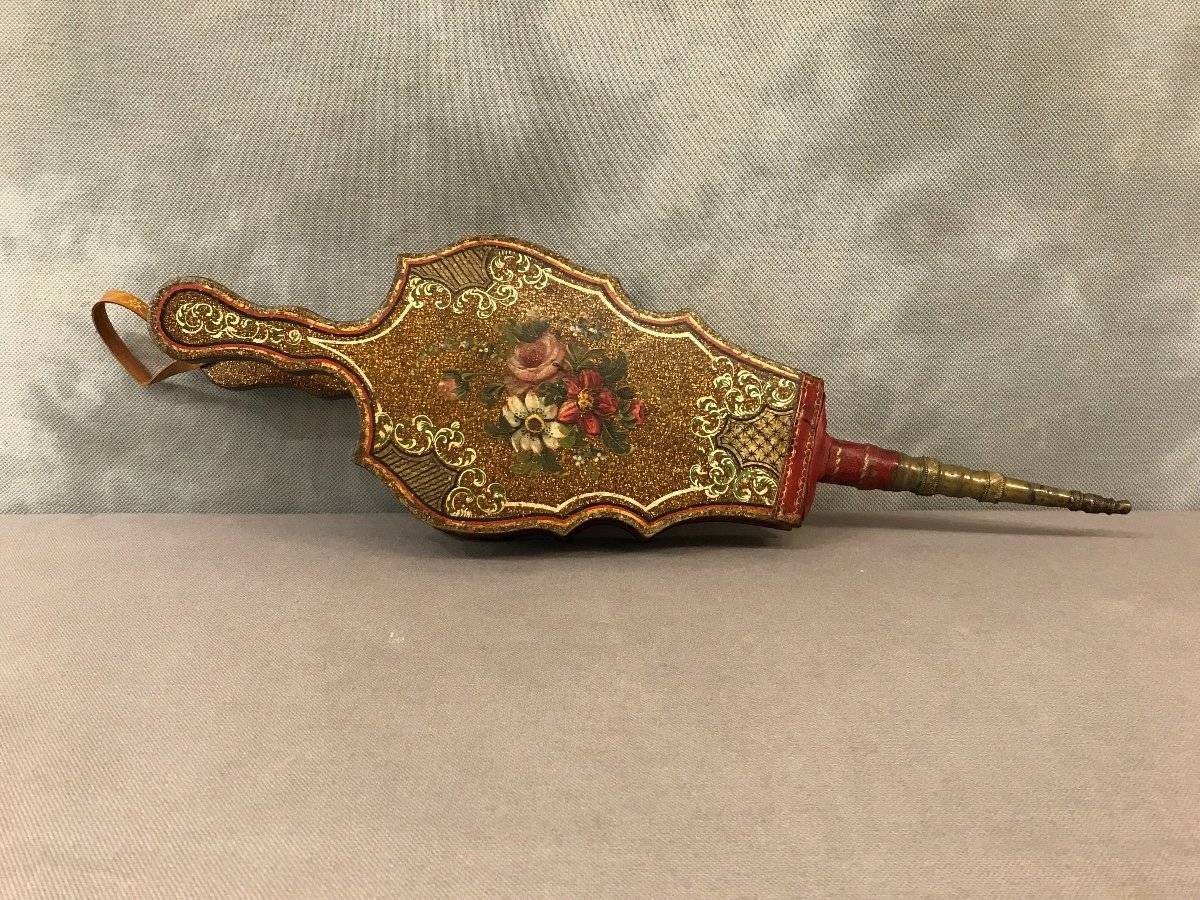 Very beautiful wooden bellows decorated with flowers and period sequins 18ème.