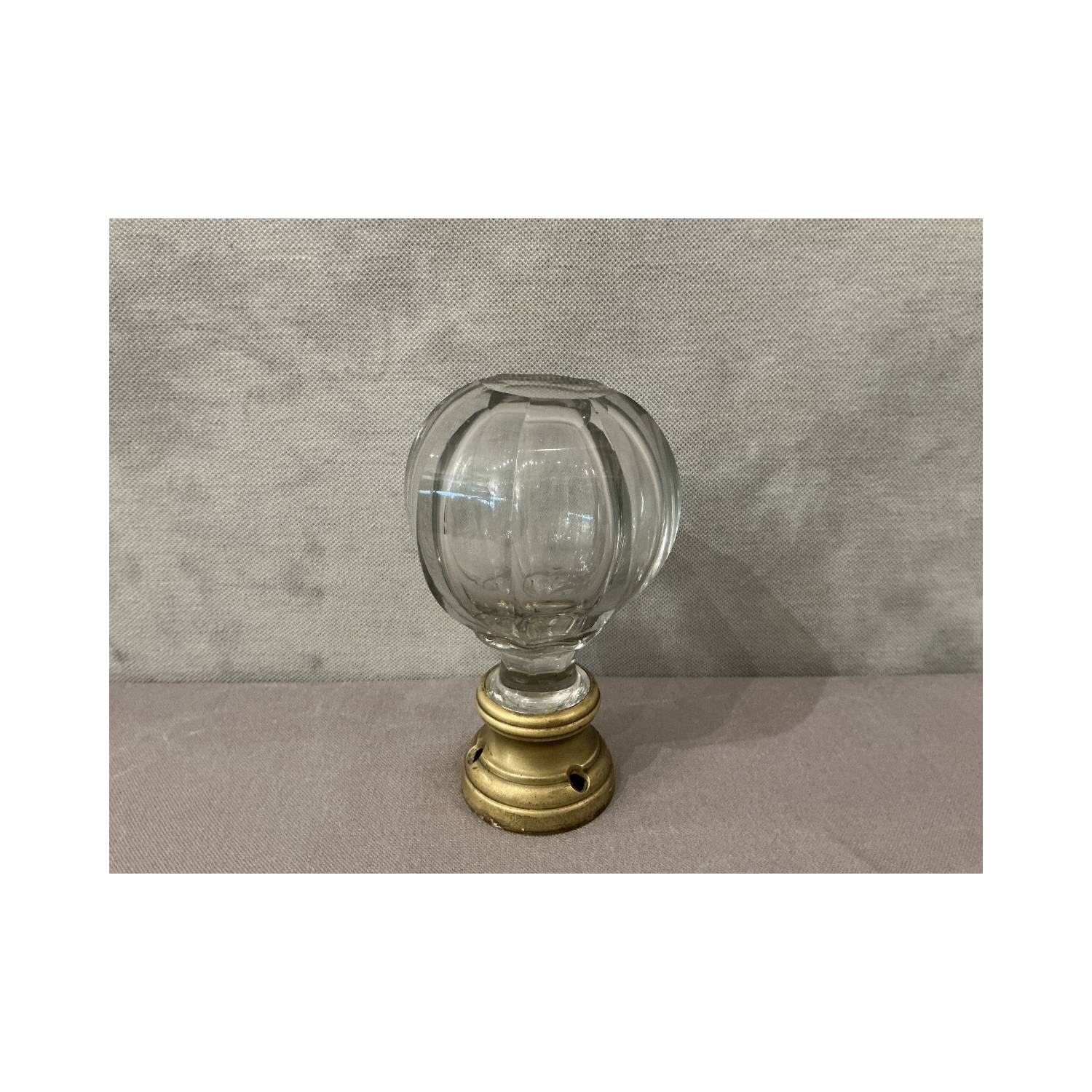 Boule d'escalier en cristal à facettes et en bronze d'époque 19 ème, la partie cristal est en bon état, quand à la partie de fixation en bronze il y a eu des trous de fait pour la fixer sur la rampe.