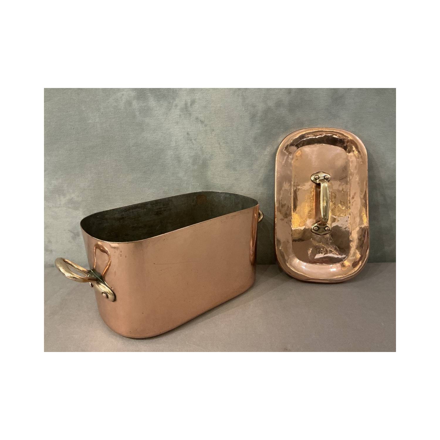 Belle marmite, daubière en cuivre entièrement poli et vernis d'époque 19 ème avec son couvercle de forme rectangulaire.